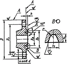 | Dy | D | D1 | D2 | DЗ | D4 | d | n | h | B | Номин. D болтов или шпилек | |||||